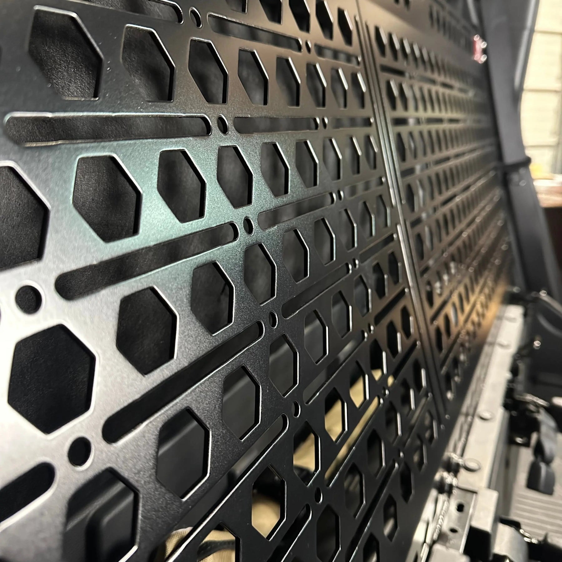 - 1/8" thick aluminum MOLLE panel for superior strength