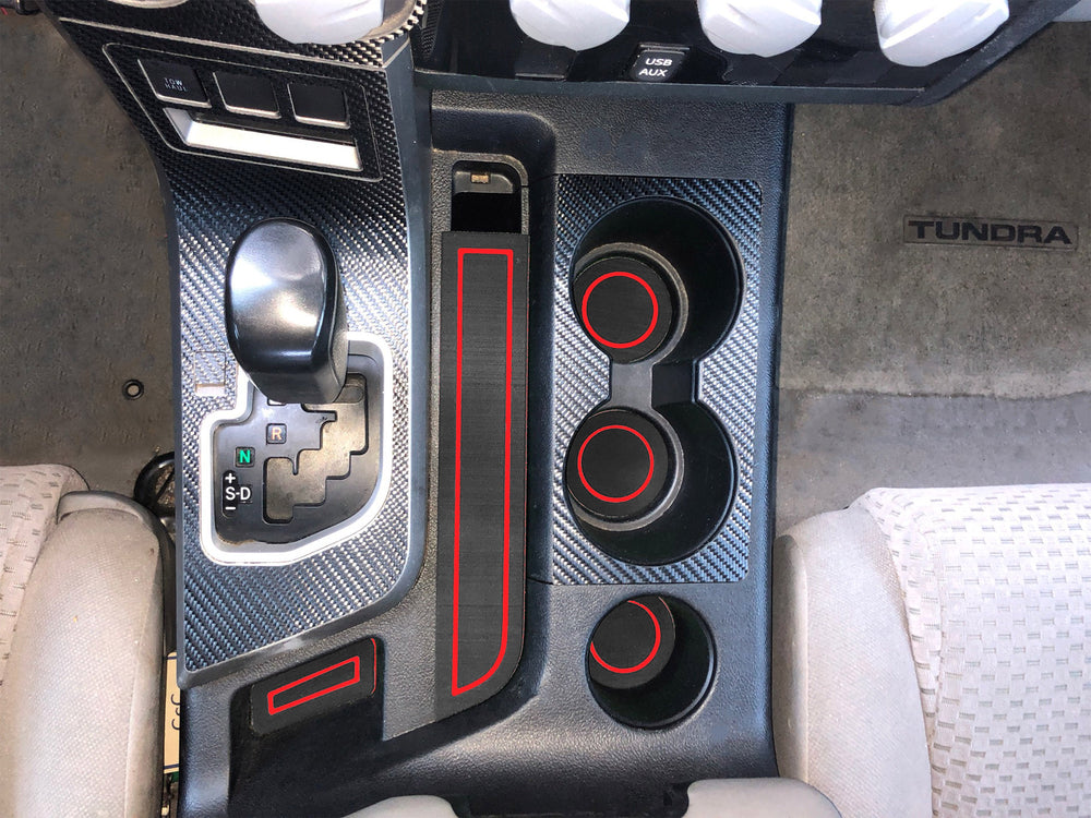 Add a new interior look to your Toyota Tundra by installing TUFSKINZ Interior Cup Holder Foam Inserts. This kit features stylish dual layered inserts that are fittingly positioned into the bucket seat cup holders and compartments.